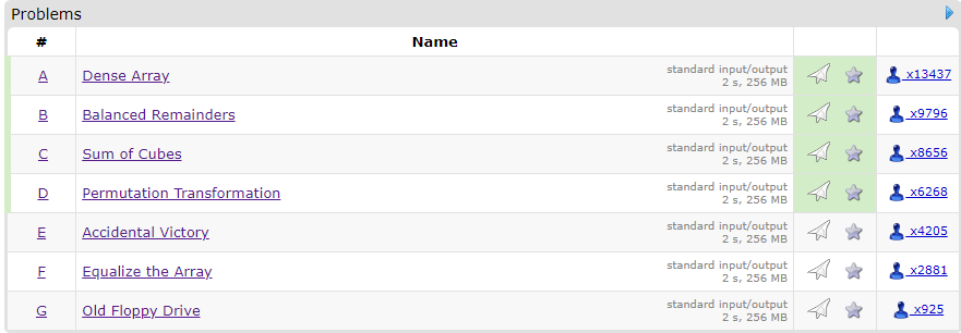 | Codeforces Round #642 (Div. 3)(virtual) (0) | 2020.12.15 |
